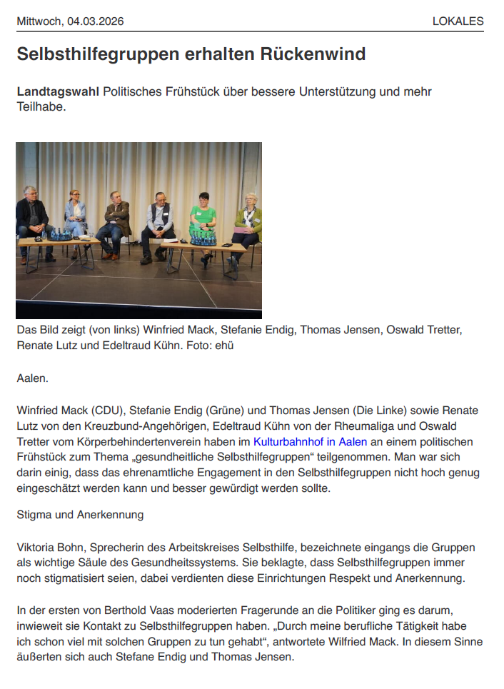 Im Dialog - Politisches Frühstück der Selbsthilfe Ostwürttemberg